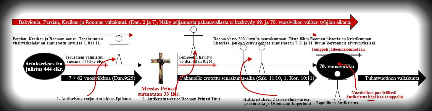 Kristikunnan historiaan kytkeytyät monumentaaliset tapahtumat paavillisen (roomalaiskatolisen) vallan noususta Turkin Ottomaanien nousuun, on pyritty työntämään Danielin näkyjen ulkopuolelle, sillä monet ovat päätyneet virheellisesti siihen johtopäätökseen, että Daniel 9:nen vuosiviikkonäky edellyttää seurakunnan ajan jäävän juutalaisen profeetan näkökentän ulkopuolelle, koska näyssä hypätään 69. vuosiviikon päättävästä Jeshuan ristiinnaulitsemisesta ja sen ohella mainitusta Jerusalemin tuhosta 70. vuosiviikkoon (7 vuoden vihan aika), joka seuraa nykyistä seurakunnan aikaa tai Jumalan armotaloutta pakanoille. Mutta se, että tämä pitää paikkansa Israelia koskevassa vuosiviikkonäyssä ei tarkoita että sama pätisi myös Danielin näkyyn pakanavalloista luvuissa 2, 7, 8 ja 11 (ks. tarkemmat perustelut kirjani luvusta 10).