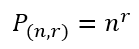 P stands for permutations, n refers to the number of elements (such as letters) that can be selected and r refers to the number of elements selected. That is, if we have 26 letters of the English alphabet to choose from and we have to blindly select 20 letters (so that you can select the same letters more than once), then 26 is only raised to the power of 20, i.e. the number 26 is multiplied by itself 20 times: