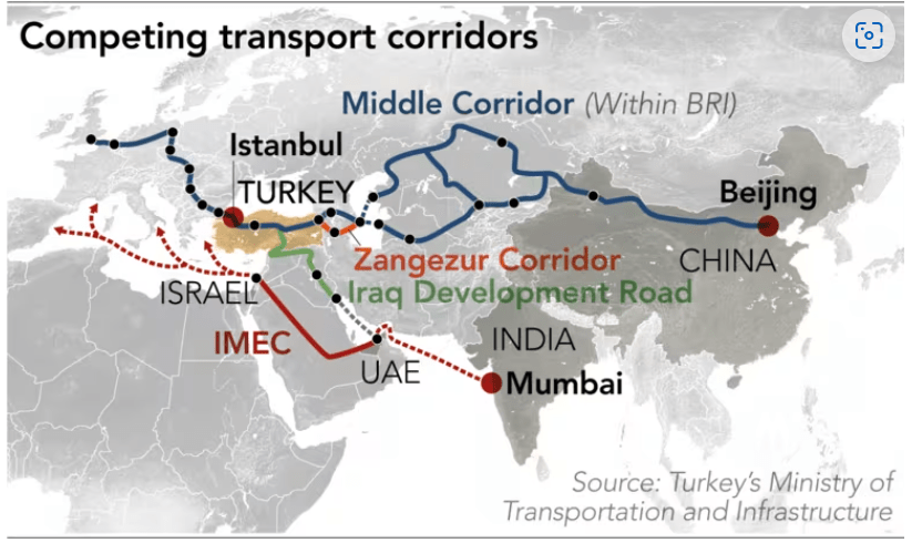 Turkki, jota pidetään luonnollisena siltana Aasian ja Euroopan välillä, on ehkä yksi herkimmistä maista kauppateiden muutoksille, kuten Ottomaanit kokivat katkerasti löytöretkien aikakaudella. Ozelin hälytys ja sen jälkeinen kehitys korostavat Turkin epämukavuutta uusia suunnitelmia kohtaan, kuten Intian ja Lähi-idän sekä Euroopan talouskäytävää (ILET), josta ilmoitettiin 20:n ryhmän kokouksen yhteydessä viime kuussa, ja Ankaran päättäväisyyttä vahvistaa reittejä, jotka asettavat Turkin keskeiseen asemaan. Ehdotettu ILET kulkisi Intiasta Yhdistyneisiin arabiemiirikuntiin, Saudi-Arabiaan, Jordaniaan ja Israeliin ja johtaisi Eurooppaan Turkin ohi.